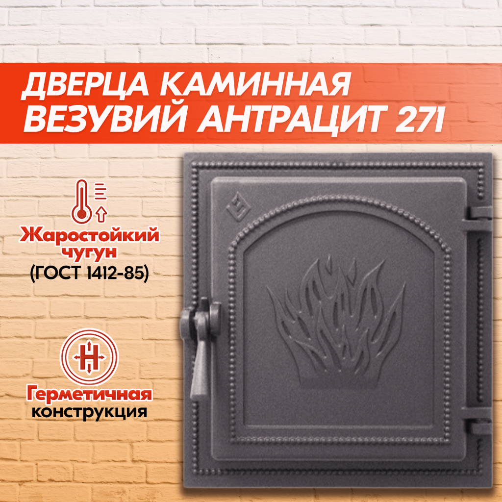 Дверка каминная Везувий 271 (Антрацит), герметичная