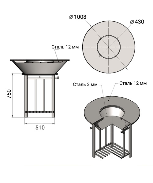 Fantastic Grill Везувий "Легенда" — это уникальный дизайн и невероятная универсальность. Конусообразная чаша для костра имеет широкий, плоский обод, который может быть использован как высокоэффективная жарочная поверхность. Температура жарочной панели регулируется расположением дров внутри конуса и меняется от 250 до 380 градусов. Эта особенность очага позволяет готовить одновременно несколько блюд при различных температурах. На дополнительно установленную решетку-гриль можно поставить казан, кастрюлю, сотейник, чайник, турку и многое другое.