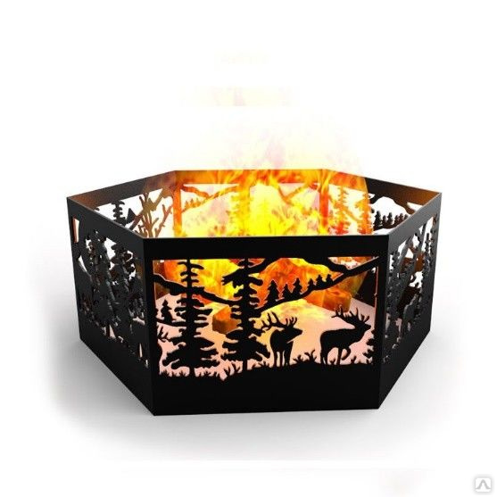 Очаг для костра «Закат в горах». Костровой очаг для разведения огня на приусадебном участке с силуэтами гор и диких животных.