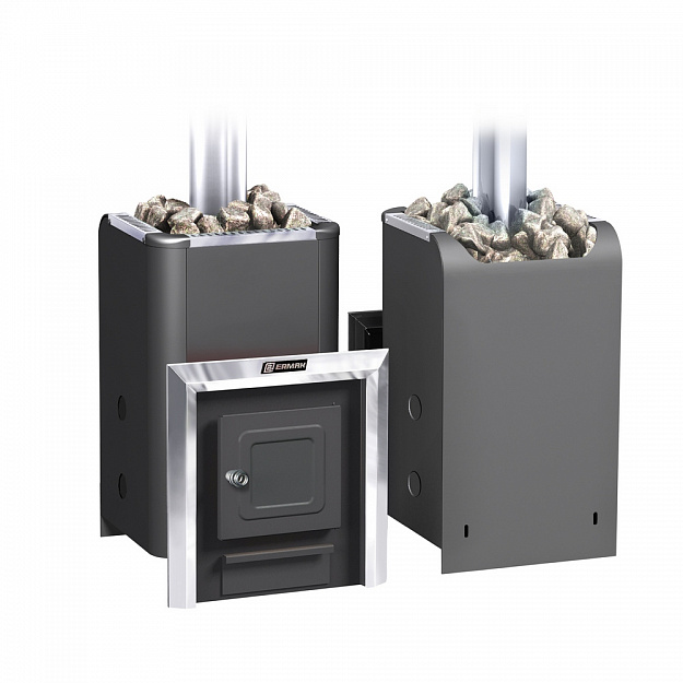 Банная печь на дровах Ермак 12 Классика - это универсальная банная печь, в качестве топлива в которой могут использоваться дрова либо топливные брикеты. Это самая младшая печь в классической линейке банных печей Ермак. Она создана для обладателей небольшой бани или сауны, получения пара и нагрева воды, с объемом парной от 6 до 12 м3.