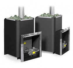 -Мощная горелка (16 кВт) с энергонезависимой автоматикой регулирования и безопасности. С возможностью работы на пропане, при установке дополнительного комплекта жиклеров (опция). Работает в автоматическом режиме по заданной температуре в парилке (+70 .. +120 °C).