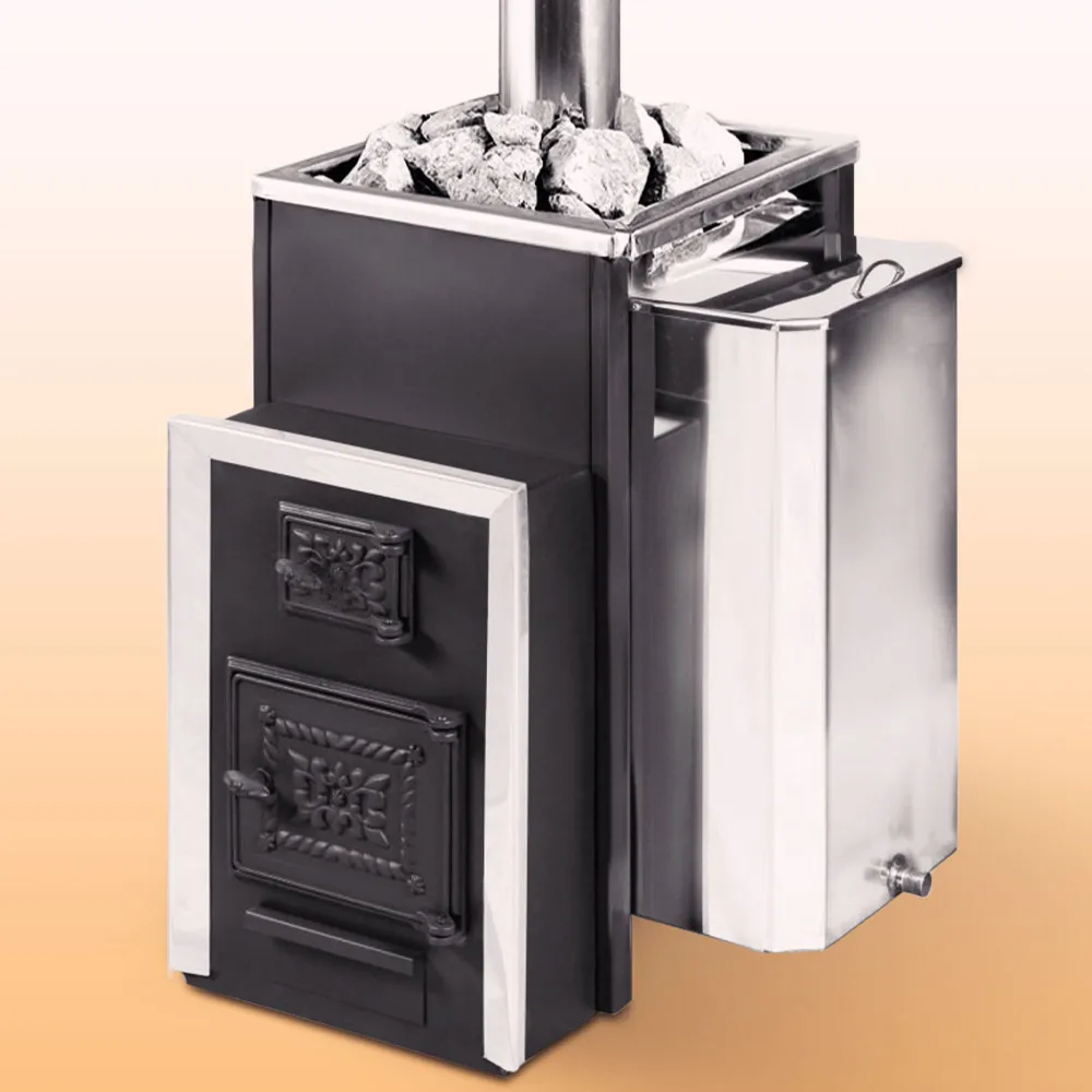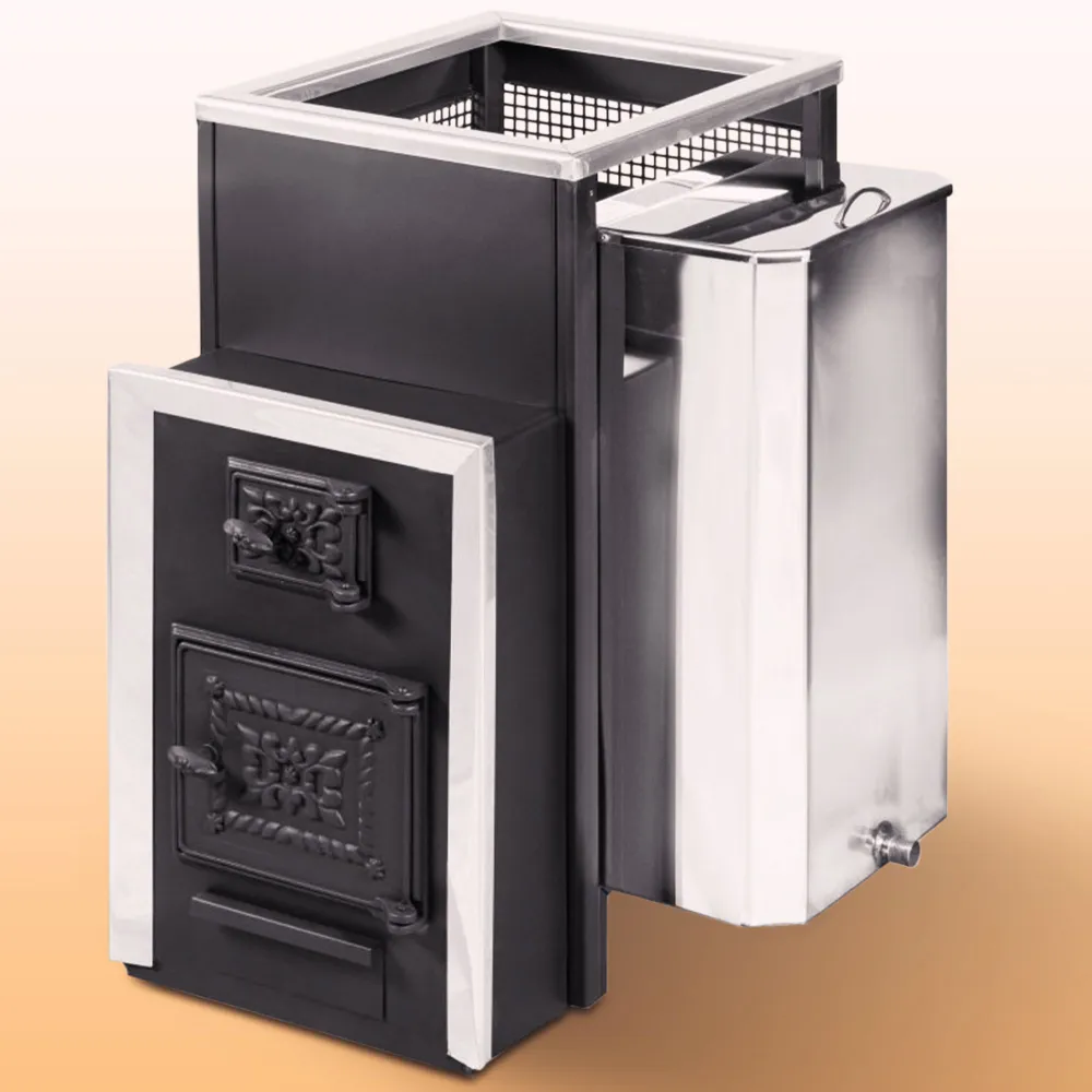 Толстые стенки топки обеспечивают долговечность банной печи.