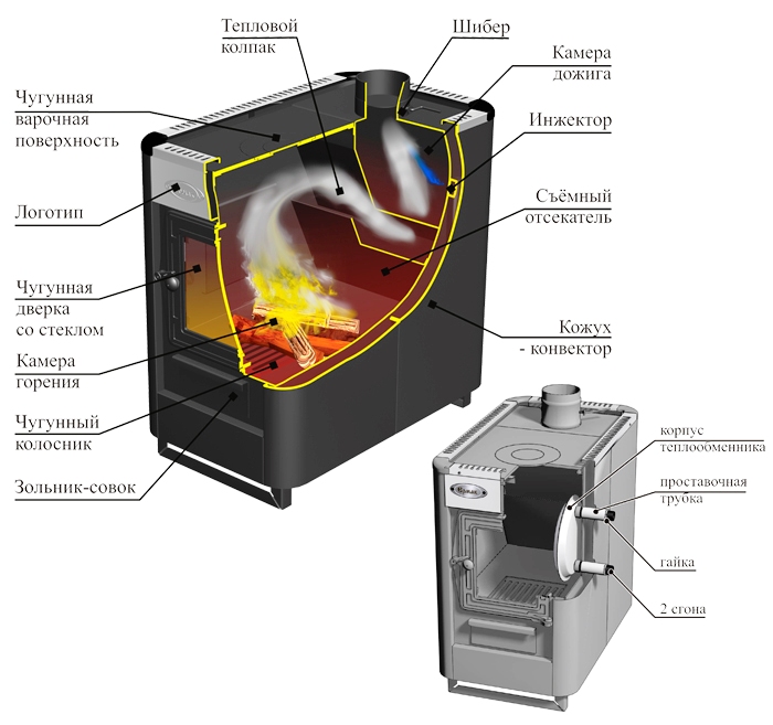 «4 в одном» - так можно охарактеризовать универсальную отопительно-варочную печь-камин Stoker «Садовый». Это удивительно, но объединение традиционных принципов изготовления стальных печей и внедрение ряда инноваций в конструкцию, позволили создать дровяную печь с мощным калорифером (с максимальным объемом отапливаемого помещения до 150 м3), генератор тепла для водяного контура системы отопления, а также удобную варочную плиту и красивый камин.