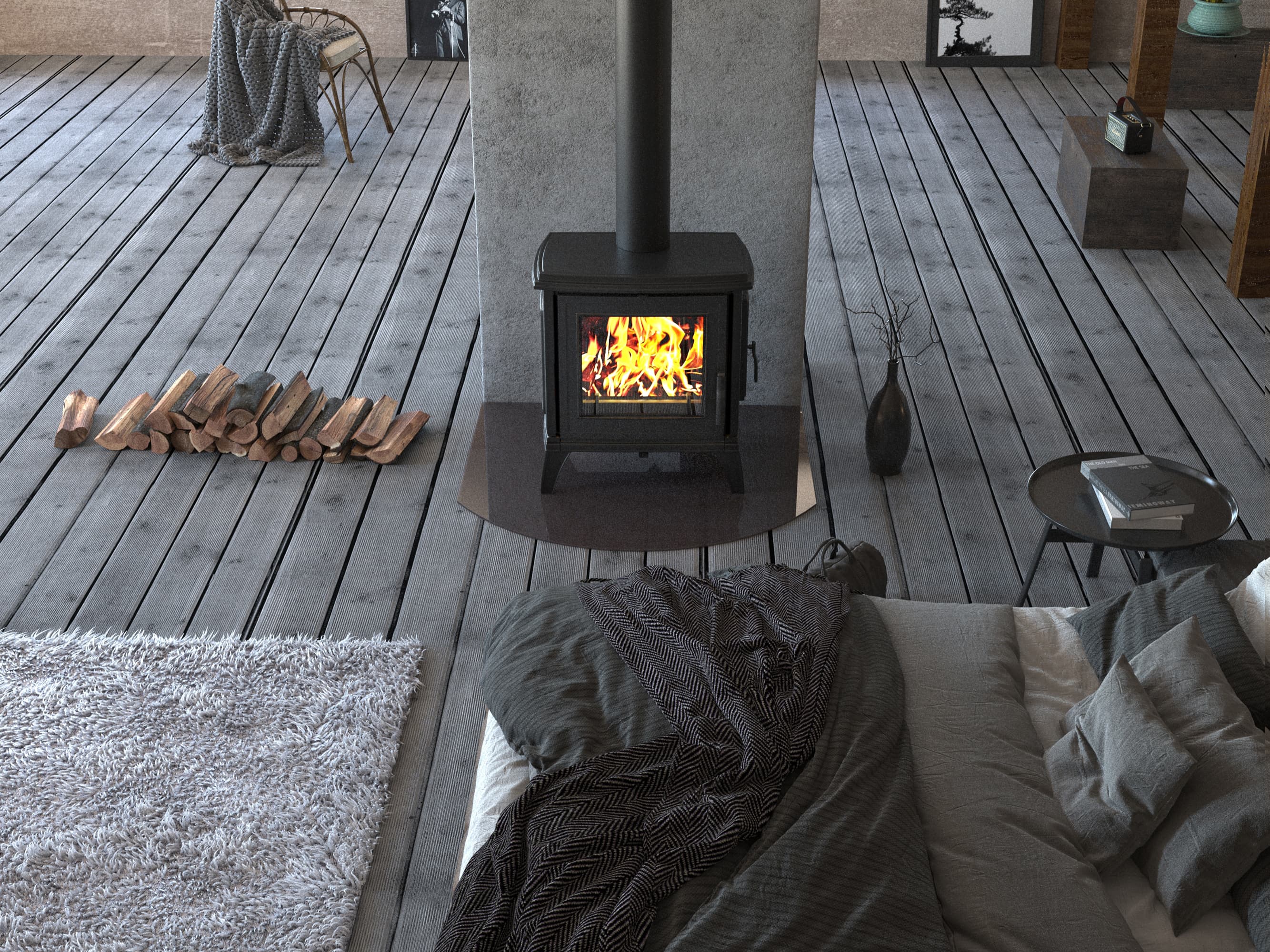 Подача воздуха в топочную камеру осуществляется с помощью заслонки, что позволяет регулировать режим горения. Подача воздуха для вторичного дожига дымовых газов повышает КПД печи и позволяет снять с печи максиму энергии для отопления помещения. Система «чистое стекло» предотвращает засаживание и копчение стекла при горении дров.