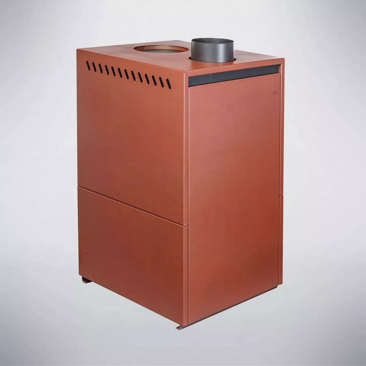 Диаметр патрубка для дымохода составляет 150 мм, подключение системы отвода дыма – верхнее.