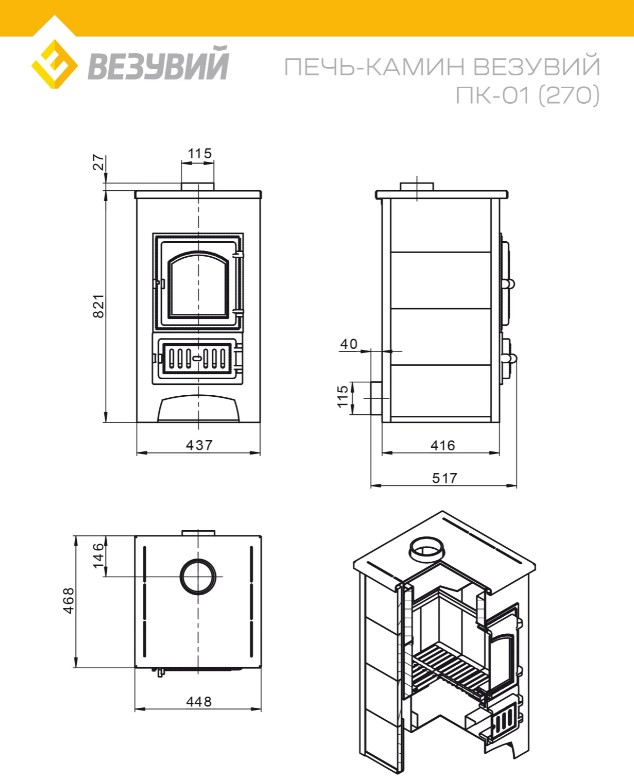 Надежная и долговечная печь, изготовленная из жаростойкой стали и чугуна.