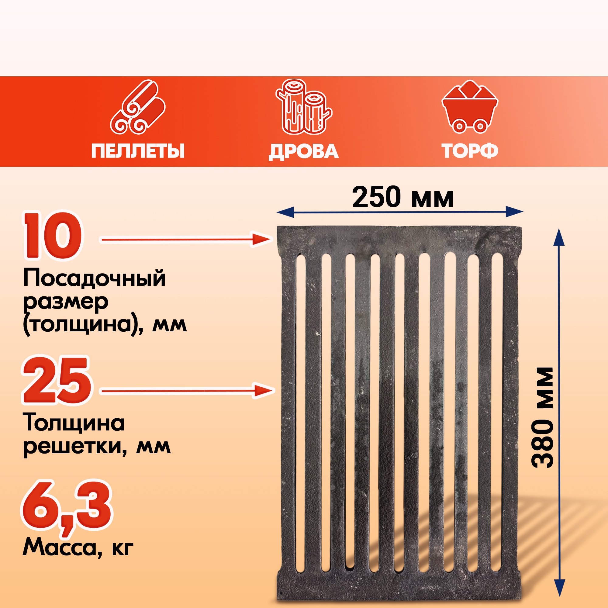 Модели колосниковых решеток для дров от Бисерского литейного завода также пригодны к топке торфом или брикетами из опилок.