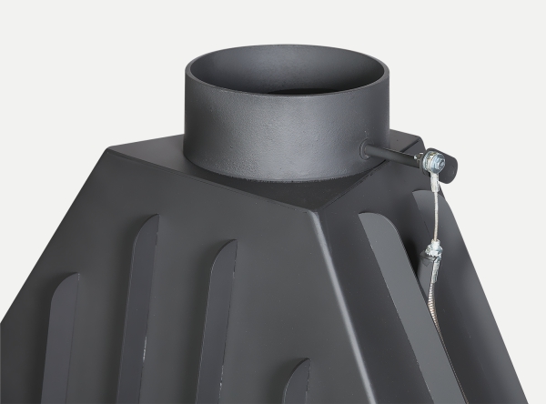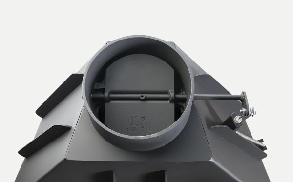 •Встроенная шиберная заслонка позволяет увеличивать/уменьшать сечение дымового канала и регулирует мощность топки.