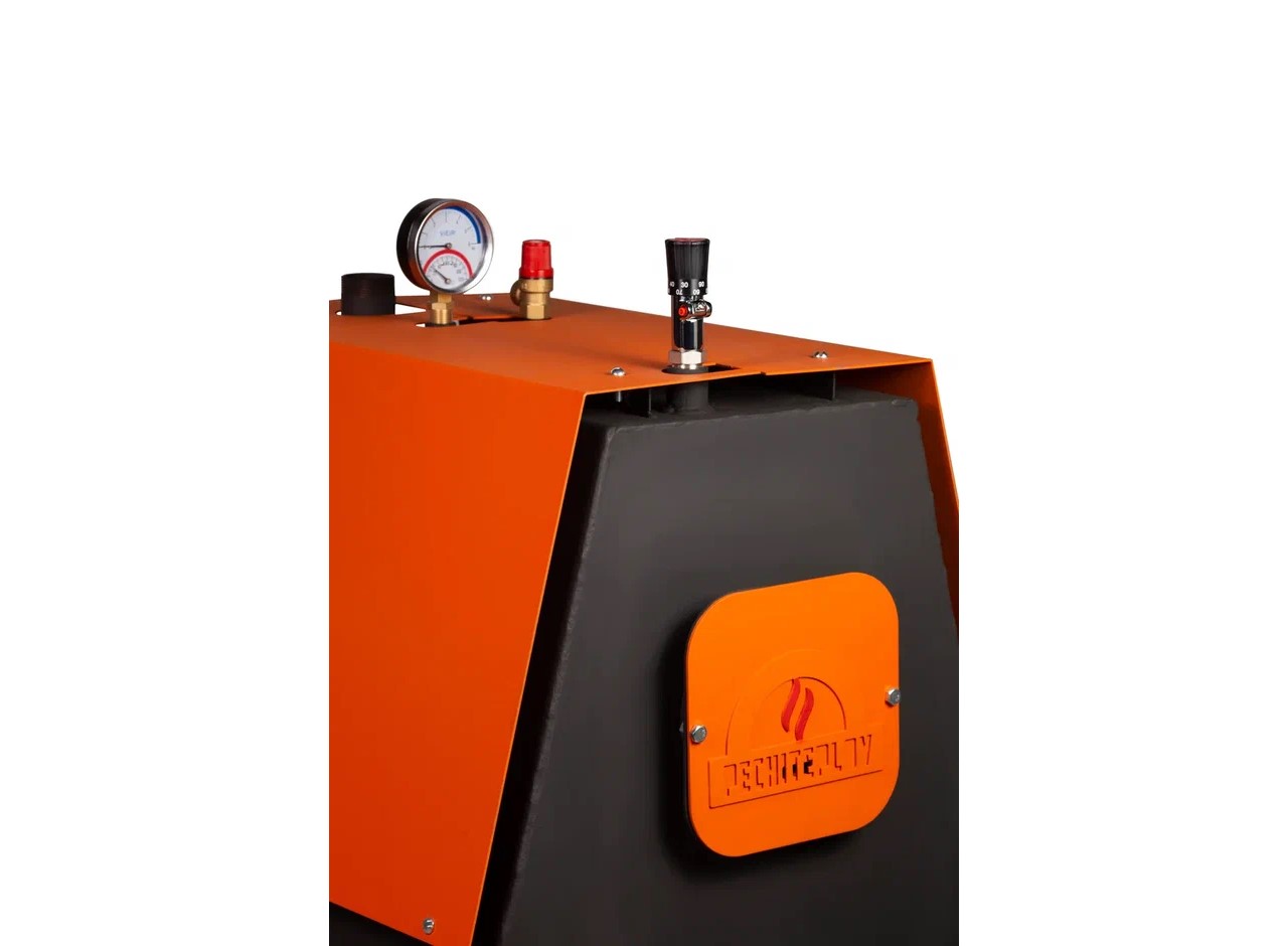 Котел PECHITEPLOV предназначен для водяного отопления жилых и нежилых помещений до 120 кв.м.  Котел может работать как на дровах, угле и пеллетах, так и на газе и от электричества. Тип топлива возможно поменять тогда, когда это нужно.
