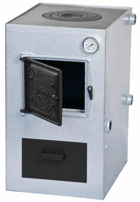 Котел водяного отопления функционирует на твердом топливе: дрова, прессованные брикеты, и предназначен для отопления загородных домов площадью до 200 м2, оборудованных системами водяного отопления с естественной или принудительной циркуляцией.