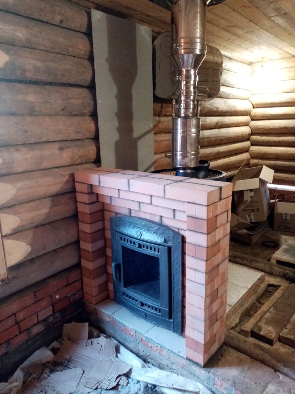 Монтаж печи Атмосфера с установкой дымохода,кладка портала из кирпича