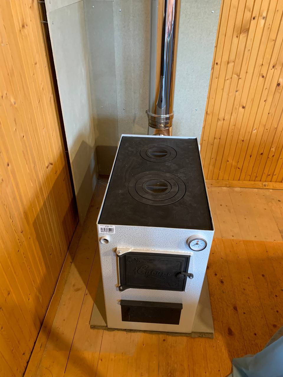 Монтаж Котела твердотопливного НМК Сибирь КВО-20 , Комплект дымохода Тис , плита Фламма